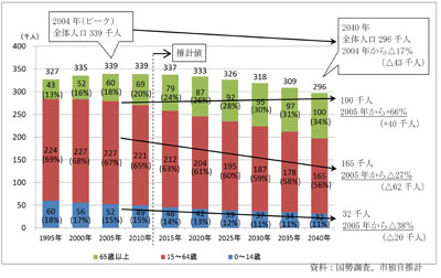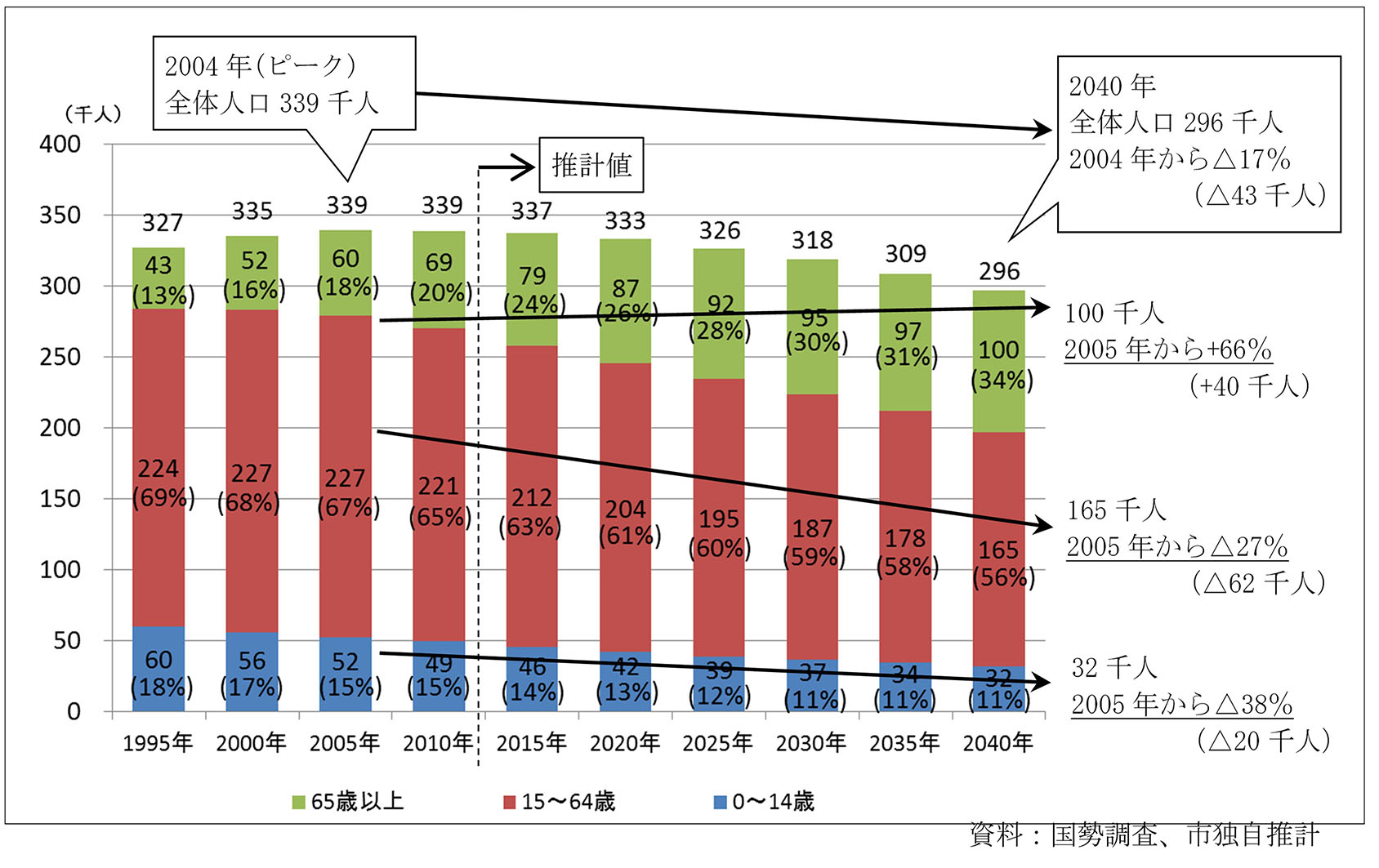 郡山市においても人口は、2004(平成16)年をピークに減少に転じ、今後も減少が見込まれている。また、少子高齢化の進行も深刻な状況である。こうした人口減少や少子高齢化社会への対応は、都市政策面でも重要かつ大きな課題であり、都市計画法や都市再生特別措置法等に規定する地方自治体の各種計画により、対応の方向性や具体的な事業、プロジェクト等が展開されている。