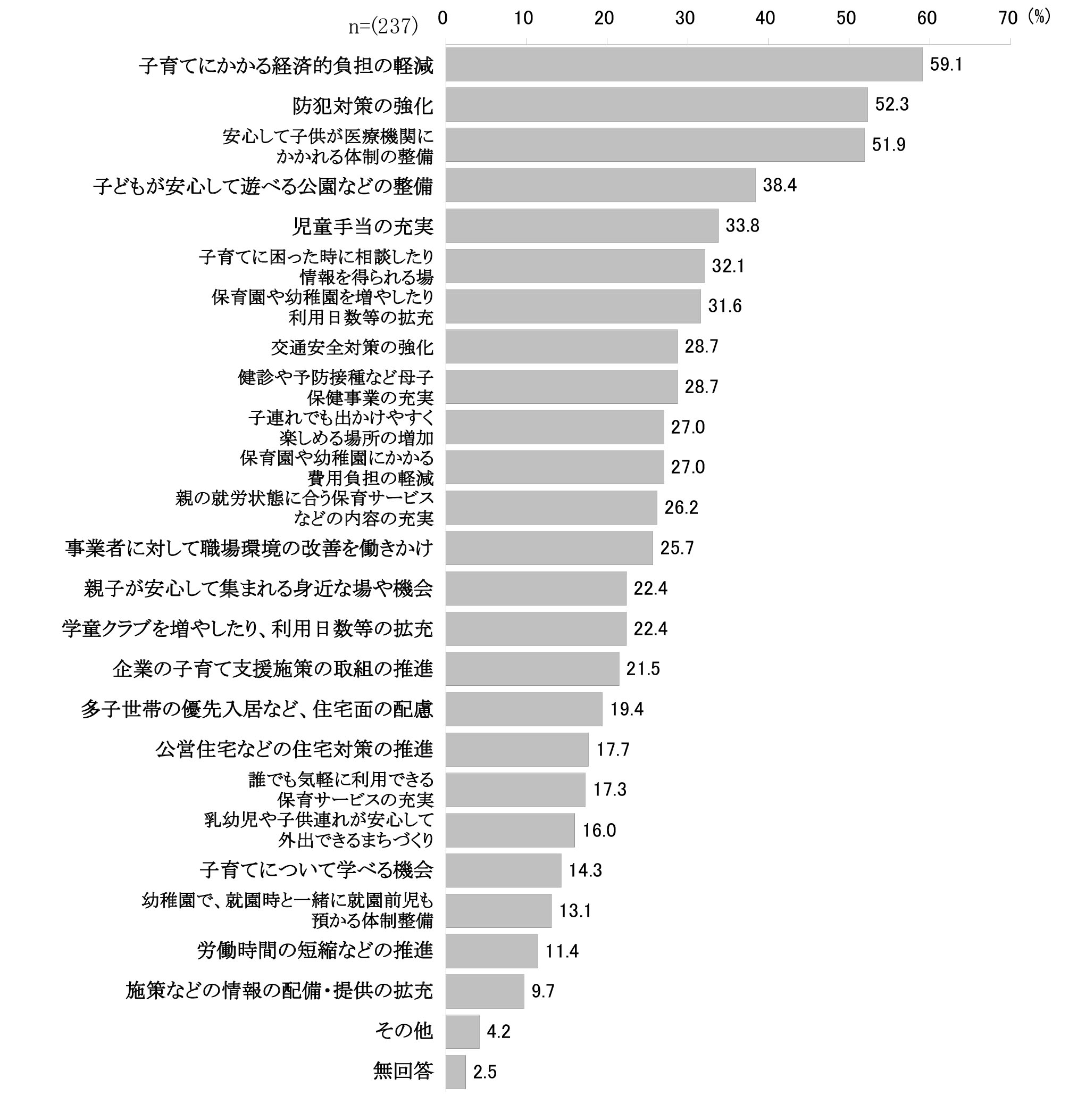問41.子育て支援施策について、どのような施策や事業の充実を望みますか。(○は3つまで)
