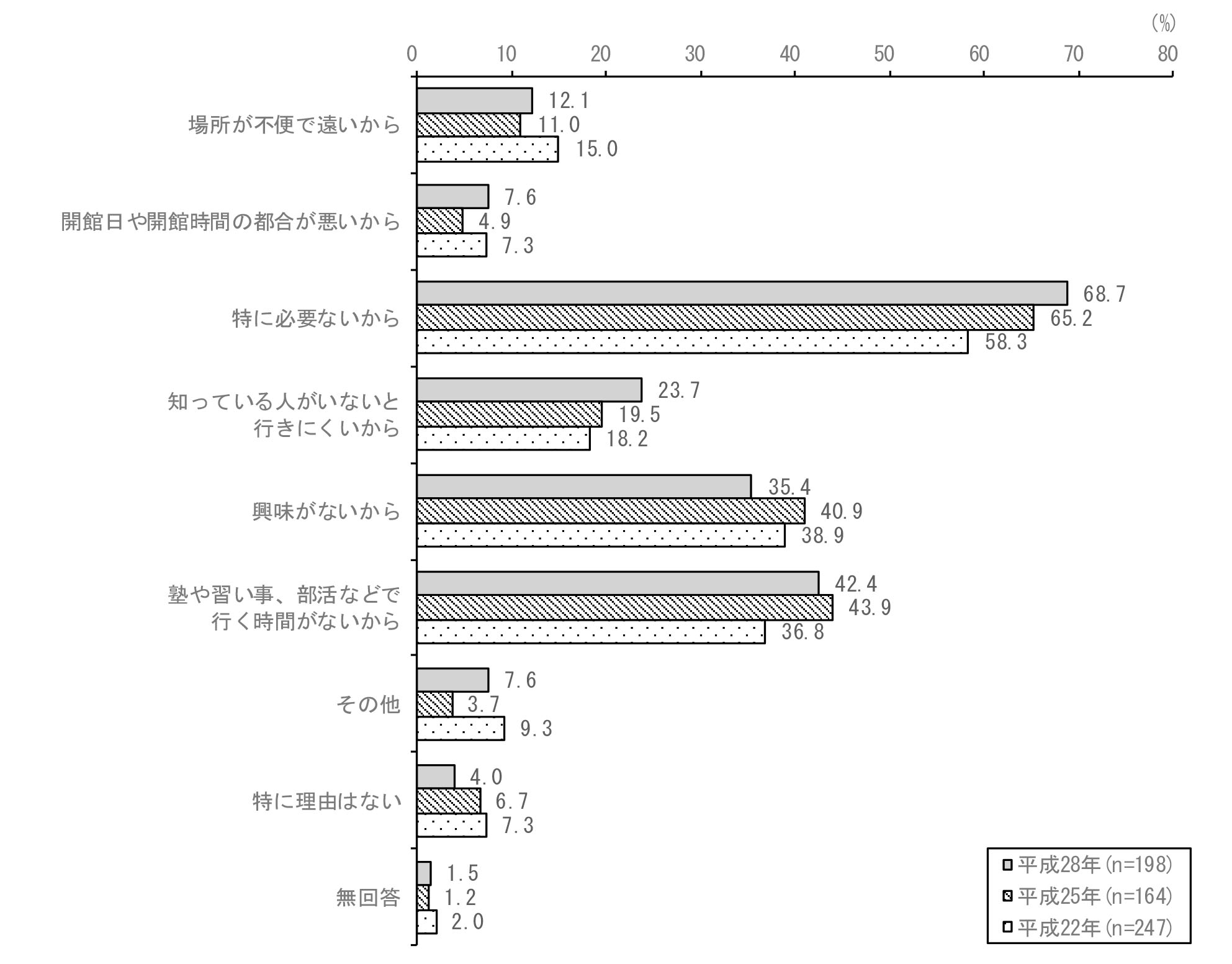 問27-2.問27で「3.知っているが行ったことがない」「4.小学校のときには利用していたが、中学生になってからは利用していない」と答えた人に質問します。