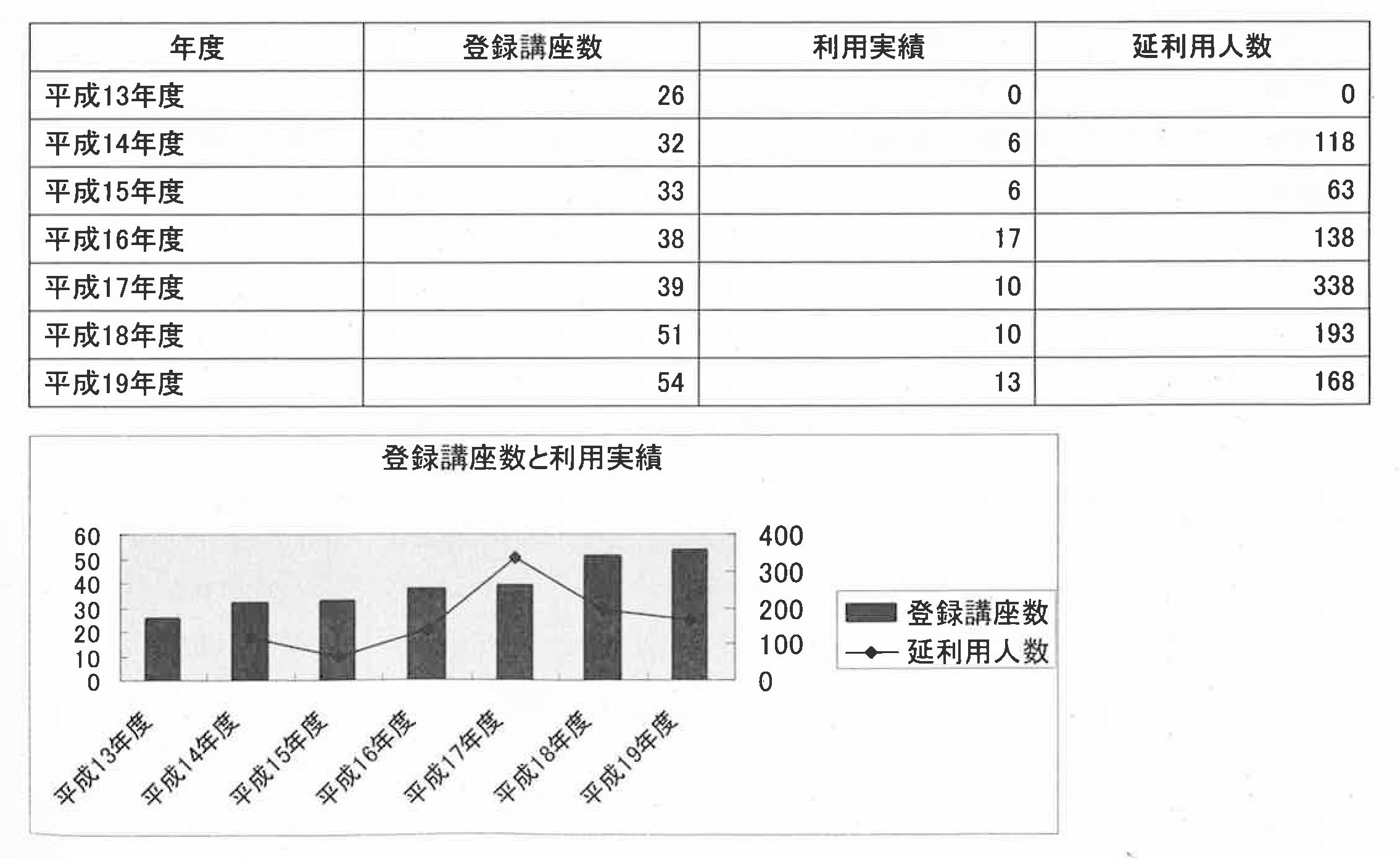 「まなび屋」が始まった平成13年度以降の、講座の利用状況は、以下のとおりです。